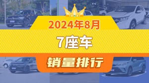 2024年8月7座车销量排行榜,途观L位居第二,第一名你绝对想不到