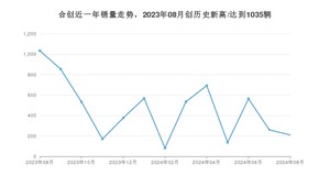 合创 8月份销量数据发布 同比下降79.71%(2024年)