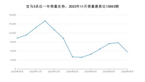 2024年8月,宝马5系销量为5600辆,同比下降45.58%,环比下降35.93%。2023年08月-2024年08月份,宝马5系销量为116932辆,同比下降11.76%。