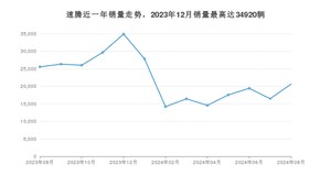 2024年8月,速腾销量为20648辆,同比下降19.24%,环比增长25.37%。2023年08月-2024年08月份,速腾销量为289727辆,同比增长4.36%。
