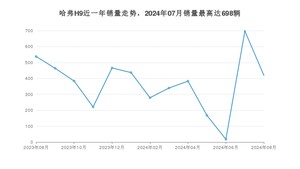 2024年8月,哈弗H9销量为420辆,同比下降21.93%,环比下降39.83%。2023年08月-2024年08月份,哈弗H9销量为4816辆,同比下降47.44%。