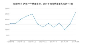 2024年8月,宏光MINI EV销量为26461辆,同比增长67.01%,环比增长67.85%。2023年08月-2024年08月份,宏光MINI EV销量为225841辆,同比下降32.06%。
