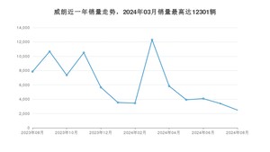 2024年8月,威朗销量为2475辆,同比下降68.52%,环比下降27.01%。2023年08月-2024年08月份,威朗销量为81029辆,同比下降44.24%。