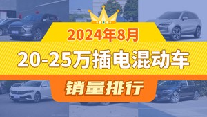 2024年8月20-25万插电混动车销量排行榜,宋PLUS新能源以11419辆夺冠,RAV4荣放双擎E+升至第10名