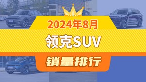2024年8月领克SUV销量排行榜,领克06位居第二,第一名你绝对想不到