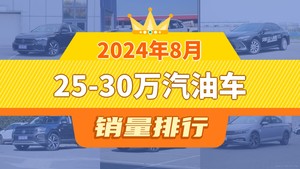 2024年8月25-30万汽油车销量排行榜,RAV4荣放位居第二,第一名你绝对想不到