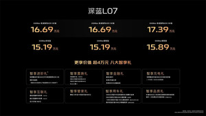 长安深蓝L07上市,售价15.19-17.39万元,搭载华为乾崑智驾