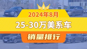 2024年8月25-30万美系车销量排行榜,Model Y以45330辆夺冠,昂科旗升至第10名