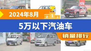 2024年8月5万以下汽油车销量排行榜,五菱宏光以6978辆夺冠