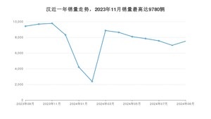 2024年9月,汉销量为7508辆,同比下降20.26%,环比增长7.58%。2023年09月-2024年09月份,汉销量为99214辆,同比下降58.5%。