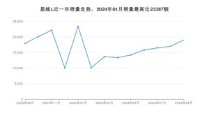 2024年9月,星越L销量为19044辆,同比增长5.84%,环比增长11.85%。2023年09月-2024年09月份,星越L销量为213619辆,同比增长38.15%。