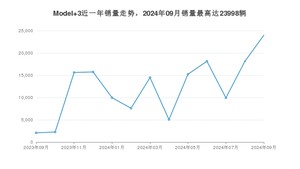 2024年9月,Model 3销量为23998辆,同比增长1%,环比增长32.4%。2023年09月-2024年09月份,Model 3销量为158281辆,同比下降6.87%。