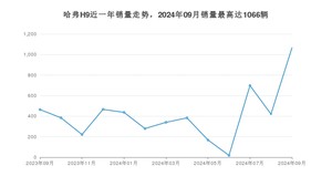 2024年9月,哈弗H9销量为1066辆,同比增长129.74%,环比增长153.81%。2023年09月-2024年09月份,哈弗H9销量为5344辆,同比下降35.97%。