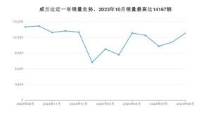 2024年9月,威兰达销量为12840辆,同比下降8.14%,环比增长15.67%。2023年09月-2024年09月份,威兰达销量为152361辆,同比增长0.61%。