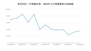 2024年9月,领克03销量为3551辆,同比下降49.1%,环比增长9.77%。2023年09月-2024年09月份,领克03销量为67920辆,同比下降1.82%。