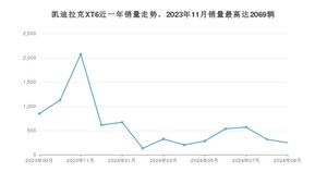 2024年9月,凯迪拉克XT6销量为248辆,同比下降70.69%,环比下降21.52%。2023年09月-2024年09月份,凯迪拉克XT6销量为7929辆,同比下降56.4%。