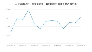 2024年9月,马自达CX-5销量为3097辆,同比增长114.18%,环比增长29.04%。2023年09月-2024年09月份,马自达CX-5销量为32915辆,同比增长159.3%。