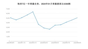 2024年9月,瑞虎7销量为5098辆,同比增长0.73%,环比增长11.29%。2023年09月-2024年09月份,瑞虎7销量为56774辆,同比增长0.26%。