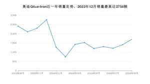 2024年9月,奥迪Q4 e-tron销量为1699辆,同比下降29.38%,环比增长21.36%。2023年09月-2024年09月份,奥迪Q4 e-tron销量为21348辆,同比增长6.36%。