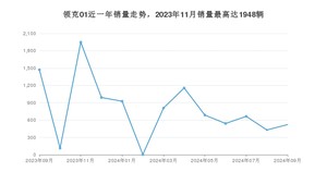 2024年9月,领克01销量为522辆,同比下降64.51%,环比增长21.68%。2023年09月-2024年09月份,领克01销量为10258辆,同比下降47.18%。