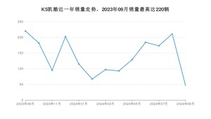 2024年9月,K5凯酷销量为46辆,同比下降79.09%,环比下降78.2%。2023年09月-2024年09月份,K5凯酷销量为1814辆,同比下降63.73%。