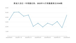 2024年9月,捷途大圣销量为4491辆,同比增长28.87%,环比增长151.46%。2023年09月-2024年09月份,捷途大圣销量为43601辆,同比增长4.26%。