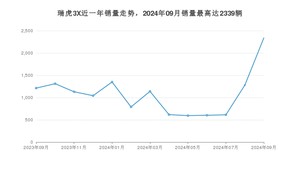 2024年9月,瑞虎3X销量为2339辆,同比增长92.99%,环比增长82.73%。2023年09月-2024年09月份,瑞虎3X销量为14020辆,同比下降34.58%。