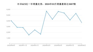 2024年9月,丰田bZ3销量为3664辆,同比下降8.92%,环比下降31.21%。2023年09月-2024年09月份,丰田bZ3销量为49514辆,同比增长165.15%。