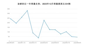 2024年9月,途睿欧销量为44辆,同比下降81.89%,环比下降10.2%。2023年09月-2024年09月份,途睿欧销量为1907辆,同比下降6.01%。