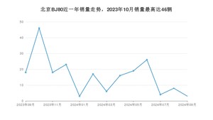 2024年9月,北京BJ80销量为3辆,同比下降83.33%,环比下降62.5%。2023年09月-2024年09月份,北京BJ80销量为207辆,同比下降62.3%。