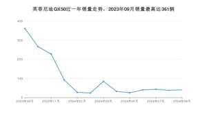 2024年9月,英菲尼迪QX50销量为40辆,同比下降88.92%,环比增长5.26%。2023年09月-2024年09月份,英菲尼迪QX50销量为1301辆,同比下降36.04%。