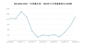 2024年9月,MG MULAN销量为1348辆,同比增长6.9%,环比增长62.8%。2023年09月-2024年09月份,MG MULAN销量为9905辆,同比增长4.55%。