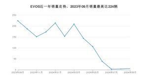 2024年9月,EVOS销量为6辆,同比下降97.32%,环比增长50%。2023年09月-2024年09月份,EVOS销量为1613辆,同比下降57.27%。