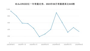 2024年9月,ID.6 CROZZ销量为334辆,同比下降64.66%,环比下降27.07%。2023年09月-2024年09月份,ID.6 CROZZ销量为6806辆,同比下降64.24%。