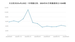2024年9月,长安欧尚X5 PLUS销量为3960辆,同比下降31.9%,环比下降9.09%。2023年09月-2024年09月份,长安欧尚X5 PLUS销量为70007辆,同比增长37.78%。