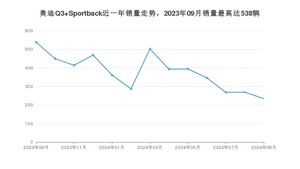 2024年9月,奥迪Q3 Sportback销量为234辆,同比下降56.51%,环比下降13.01%。2023年09月-2024年09月份,奥迪Q3 Sportback销量为4924辆,同比下降43.44%。