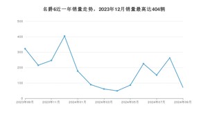 2024年9月,名爵6销量为71辆,同比下降77.95%,环比下降73%。2023年09月-2024年09月份,名爵6销量为2359辆,同比下降50.51%。