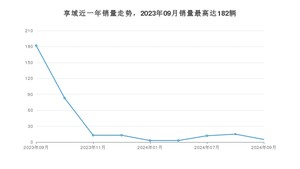 2024年9月,享域销量为5辆,同比下降97.25%,环比下降66.67%。2023年09月-2024年09月份,享域销量为329辆,同比下降97.24%。