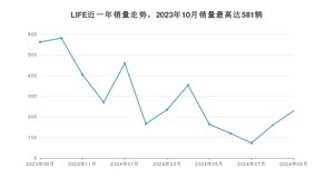 2024年9月,LIFE销量为229辆,同比下降59.25%,环比增长44.03%。2023年09月-2024年09月份,LIFE销量为3774辆,同比下降57.33%。