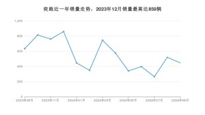2024年9月,奕跑销量为446辆,同比下降29.65%,环比下降14.23%。2023年09月-2024年09月份,奕跑销量为7150辆,同比下降24.42%。