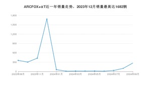2024年9月,ARCFOX αT销量为271辆,同比下降23.66%,环比增长168.32%。2023年09月-2024年09月份,ARCFOX αT销量为3292辆,同比下降26.35%。