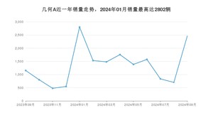 2024年9月,几何A销量为2466辆,同比增长113.69%,环比增长251.28%。2023年09月-2024年09月份,几何A销量为17515辆,同比下降54.96%。