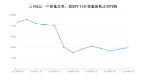 2024年9月,几何E销量为1980辆,同比下降54.29%,环比增长8.02%。2023年09月-2024年09月份,几何E销量为36127辆,同比增长9.13%。