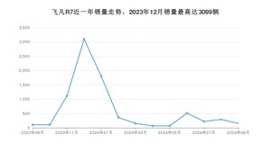 2024年9月,飞凡R7销量为152辆,同比增长43.4%,环比下降48.12%。2023年09月-2024年09月份,飞凡R7销量为8057辆,同比增长40.05%。