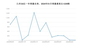 2024年9月,几何G6销量为13辆,同比下降98.18%,环比下降18.75%。2023年09月-2024年09月份,几何G6销量为5011辆,同比下降36.22%。