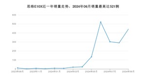 2024年9月,思皓E10X销量为442辆,同比增长3%,环比增长52.41%。2023年09月-2024年09月份,思皓E10X销量为1769辆,同比下降88.16%。