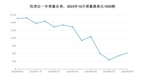 2024年9月,悦虎销量为626辆,同比下降68.06%,环比增长23.47%。2023年09月-2024年09月份,悦虎销量为17000辆,同比下降18.05%。