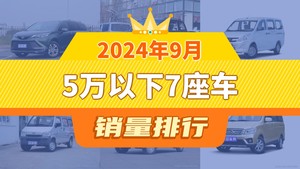 2024年9月5万以下7座车销量排行榜,五菱荣光V屈居第三,五菱之光成最大黑马