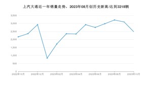 在国内市场上,上汽大通,在2023年10月的销量为2487辆,同比增长14.77%,环比下降19.67%。2022年10月-2023年10月份,上汽大通累计销量为32166辆,较去年同期下降8.84%。