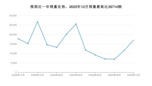 2023年10月,雅阁销量为17052辆,同比下降3.85%,环比增长48.16%。2022年10月-2023年10月份,雅阁销量为196817辆,同比下降19.34%。